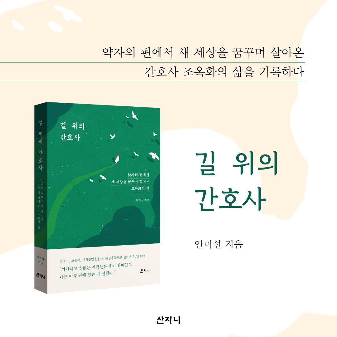 혹시 ‘조옥화’라는 이름을 들어보신 적 있으신가요? 아마 대부분의 독자분들에게는 낯선 이름일지도 모르겠습니다. 유명한 정치인도, 언론에 자주 등장하는 활동가도 아니니까요. 하지만 저는 교정지를 통해 이 이름을 처음 마주했고, 그래서 더 궁금해졌습니다. 기록되지 않은 자리에서, 드러나지 않는 방식으로 자신의 삶을 이어온 사람은 과연 어떤 시간을 살아왔을까 하고요. 우리는 종종 ‘변화를 만든 사람’이라고 하면 거창한 업적이나 역사에 남을 만한 사건을 떠올립니다. 하지만 정말 세상을 바꾸는 힘은, 어쩌면 우리 곁의 평범한 사람들이 자기 자리에서 내린 선택들이 모여 생기는 것일지도 모르겠습니다. 이번 산지니 소식에서 소개하고 싶은 책 <길 위의 간호사>는 바로 그런 힘이 눈앞에 선명히 보이는 듯한 책입니다.