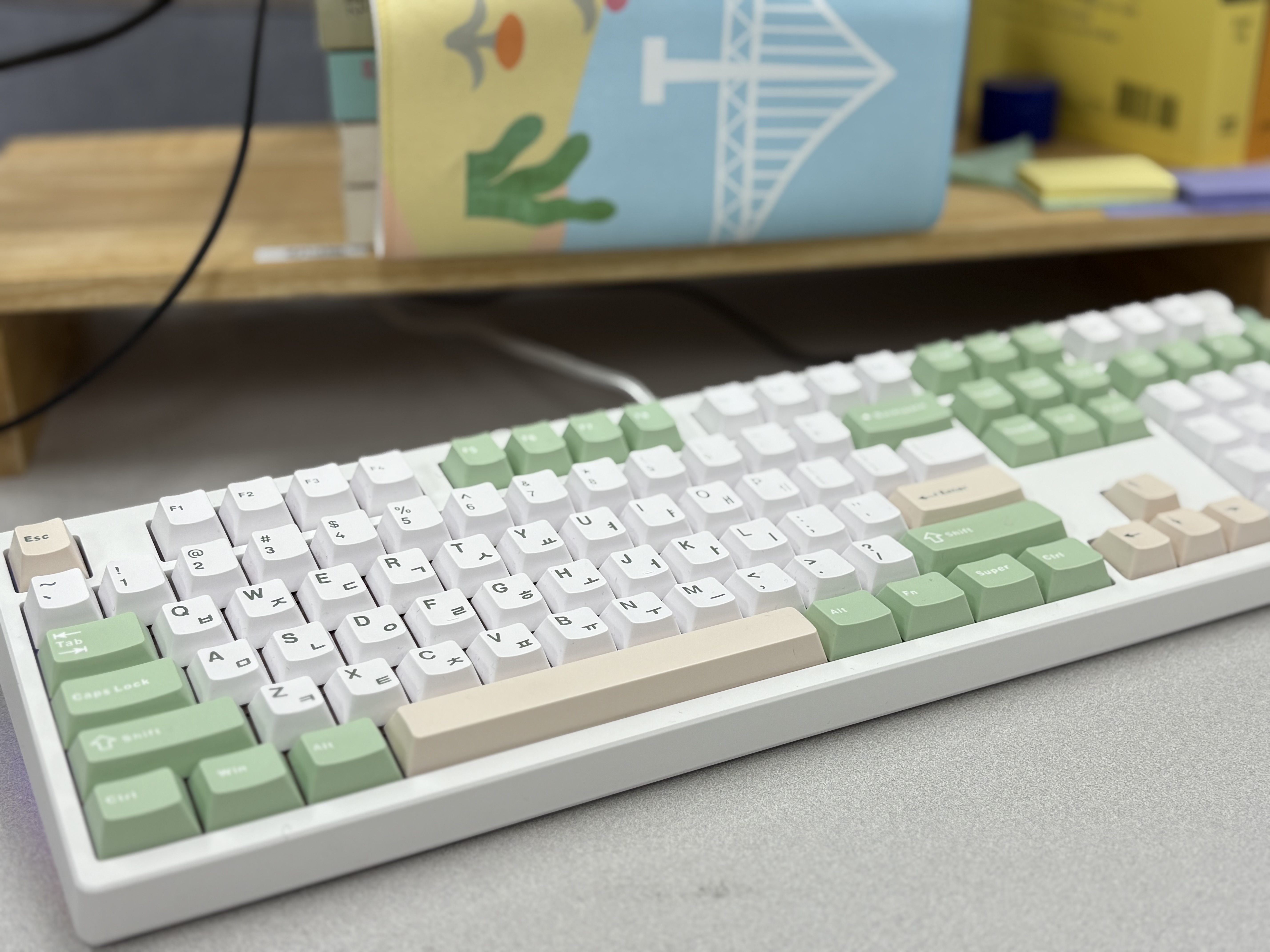 입사 7년만에 개인 장비를 마련했습니다. 그간 ‘고수는 장비를 탓하지 않는다…’는 아니었고요. 그냥 귀차니즘+바꾼다고 뭐가 얼마나 달라지겠어라는 냉담함이었달까요. 편집자들이 개인용 키보드나 마우스를 갖출 때도 꿋꿋이 회사 기본템을 사용해왔었는데요. 어느 날 좀비 디자이너의 책상에서 파스텔톤 키보드를 발견하게 되었습니다. 그날은 어쩐지 ‘나도 이참에 한번 바꿔봐?’라는 생각이 불쑥 올라오더라고요. 좀비 디자이너에게 구매 링크를 전달받고 드디어 이름도 예쁜 말차그린+벚꽃축 모델로 구매를 하였답니다.(컬러 고르는 것도 어찌나 고민이 되던지요)