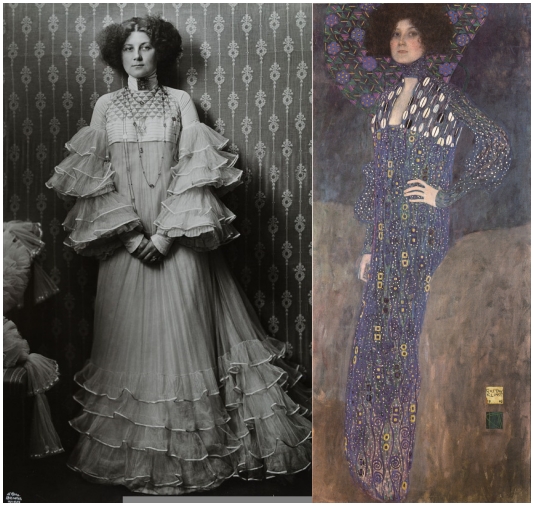 구스타프 클림트(1862~1918)는 <패션, 영화 속 미술을 그리다>에서 중요하게 다뤄지는 예술가입니다. 저자인 진경옥 교수는 패션과 예술의 협업이 구스타프 클림트 시대부터 시작되었다고 말합니다. 클림트는 기존 전통 예술로부터의 분리를 선언하며 오스트리아 빈의 미술가 집단 ‘빈 분리파(Wiener Secession)’를 만듭니다. 이들은 회화·건축·공예를 아우르는 종합예술을 추구하며 예술과 생활을 밀접하게 만들고자 했습니다. 결과적으로 순수미술과 패션을 포함한 응용미술의 경계가 모호해지게 되었고, 예술가와 패션디자이너들의 협업이 시작되었습니다. 마침 이 시기는 여성 의상에서 코르셋을 내던진 의상개혁 운동과 맞물린 시기였고, 클림트는 이 개혁의상의 선두 아티스트였습니다. 클림트의 평생의 연인이었던 에밀리 플뢰게 역시 여성의상에서 코르셋을 제거한 패션 디자이너였습니다. 그동안 여성을 불편하게 동여매던 코르셋을 없애고 헐렁하고 넉넉한 품의 의상은 클림트의 작품에서도 쉽게 찾아볼 수 있습니다. |