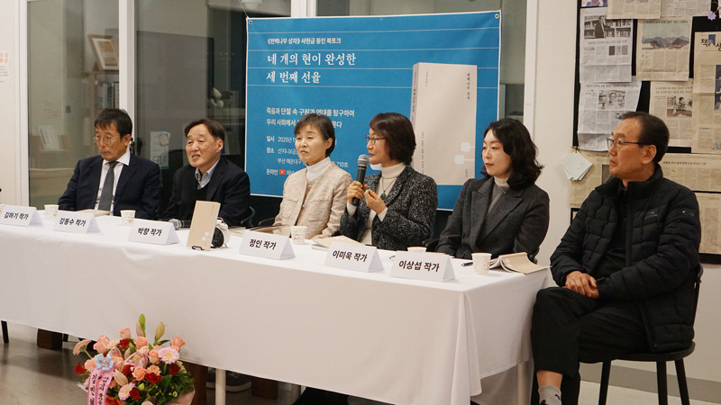 지난 11월 27일, 사현금 동인의 세 번째 무크지 <편백나무 상자> 북토크가 열렸습니다. 사현금 동인 김하기, 강동수, 박향, 정인 소설가와 더불어 이상섭, 이미욱 소설가와 함께했는데요. 사현금 동인은 군사 정권의 문화 탄압에 맞서 저항의 수단으로 쓰였던 무크지의 역사성을 이어받아, 작품을 통해 “문학은 개인을 구원하는가, 아니면 사회를 구원하는가”라는 질문을 던집니다. 작가가 하나의 작품을 써내기 위해서 어떤 과정을 거치는지, 개성이란 무엇인지, 경험은 우리 삶을 어떻게 바꾸어 놓는지 등을 생각해 볼 수 있는 시간이었습니다.