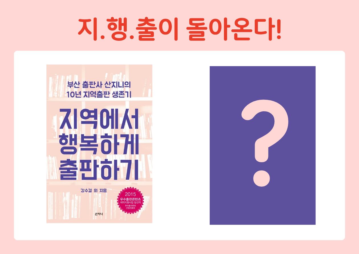 과연 산지니는 여전히 지역에서 행복하게 출판하고 있을까요? 산지니의 내밀한 속사정이 궁금한 독자 여러분 다가오는 새해 <지행출 2> 출간을 기대해주세요. 참고로 아직 제목은 미정입니다. 좋은 아이디어를 투척하는 독자분들께는 소정의 상품이 있습니다 🧡